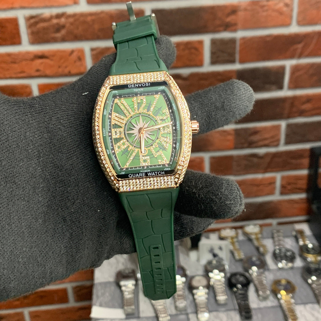 FM Iced Stone Luxury Watch (Green & Rose Gold)
