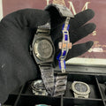 This A+ copy quartz timepiece features a 45mm metallic case with a diamond-cut skeleton dial, showcasing precision engineering inside and out. The premium heavy chain and butterfly lock ensure a secure and comfortable fit, while its water-resistant build adds everyday practicality to its striking design.