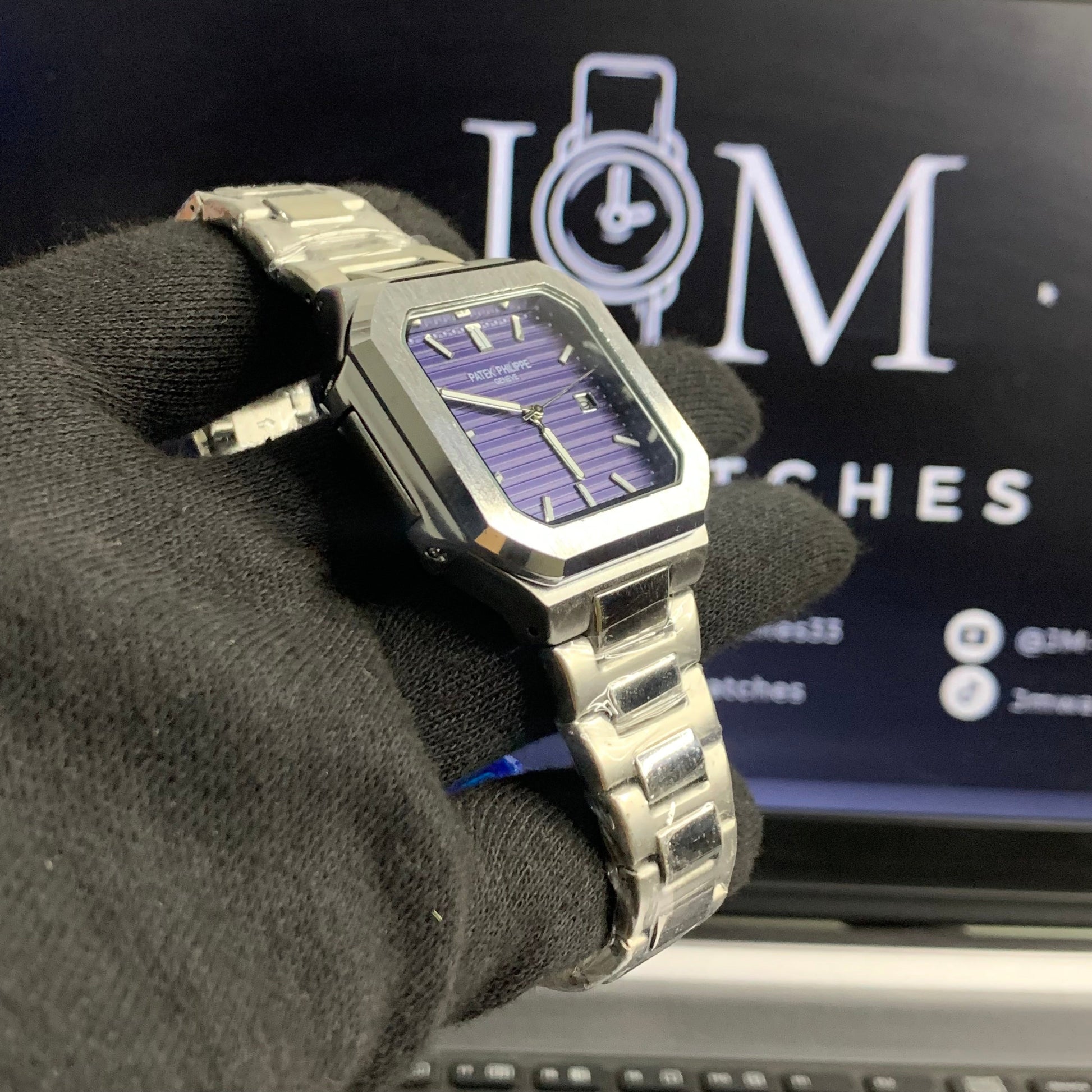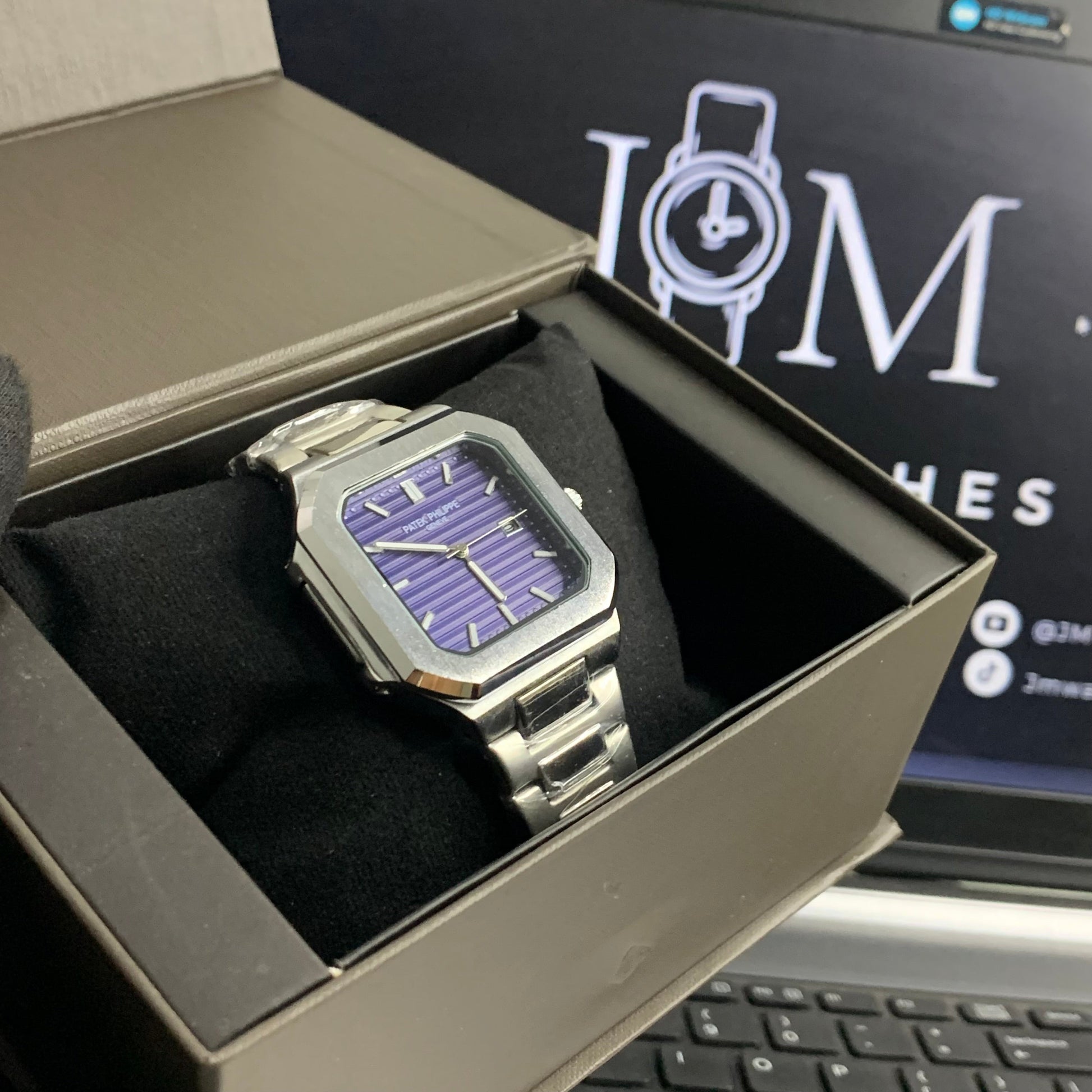 PP– Square Silver with Blue Dial (A+ quality)