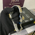 - Striking Blue Sunburst Dial: A 36 mm dial with a radiant blue sunburst finish, enhanced by luminescent gold-applied numerals and hands for excellent legibility and timeless elegance .