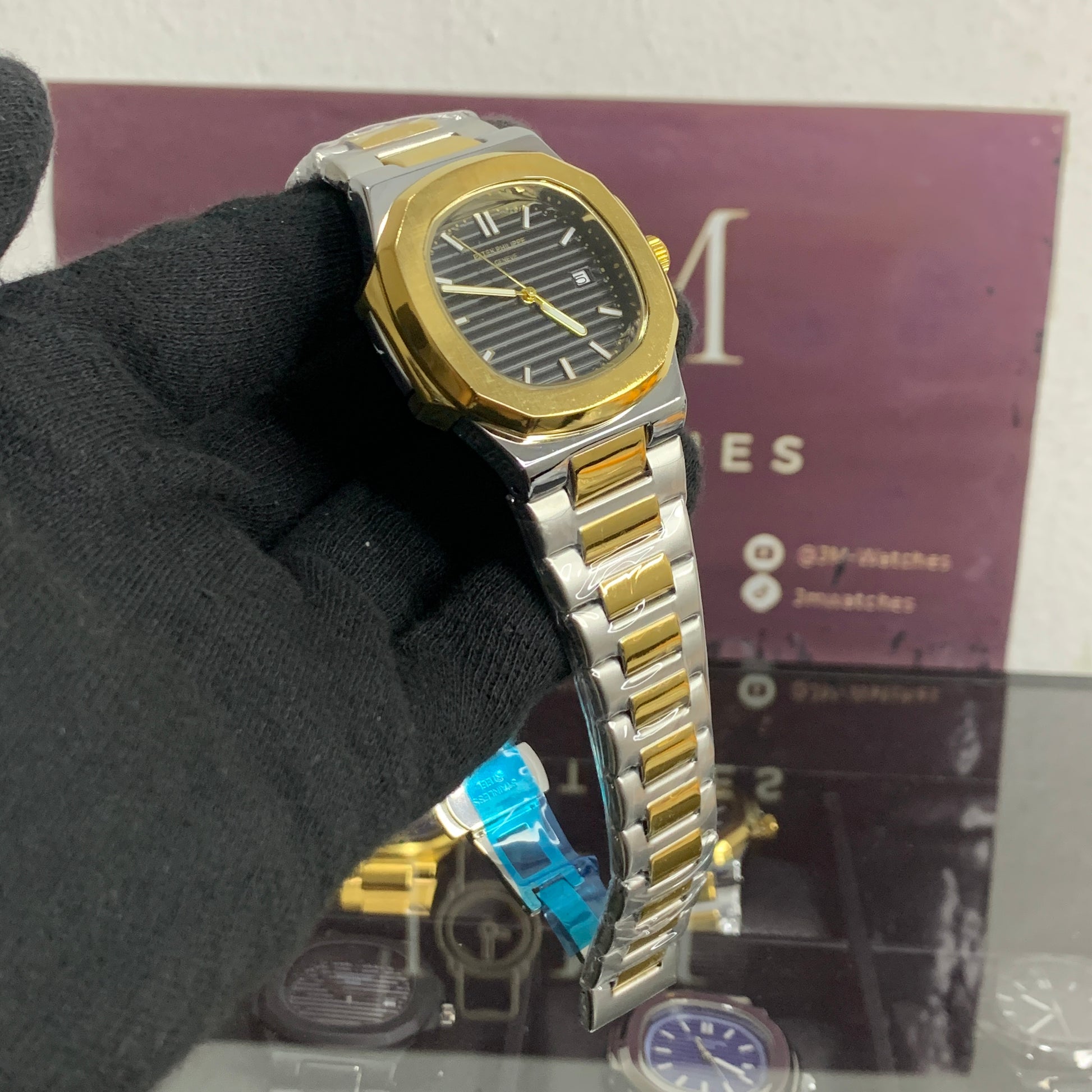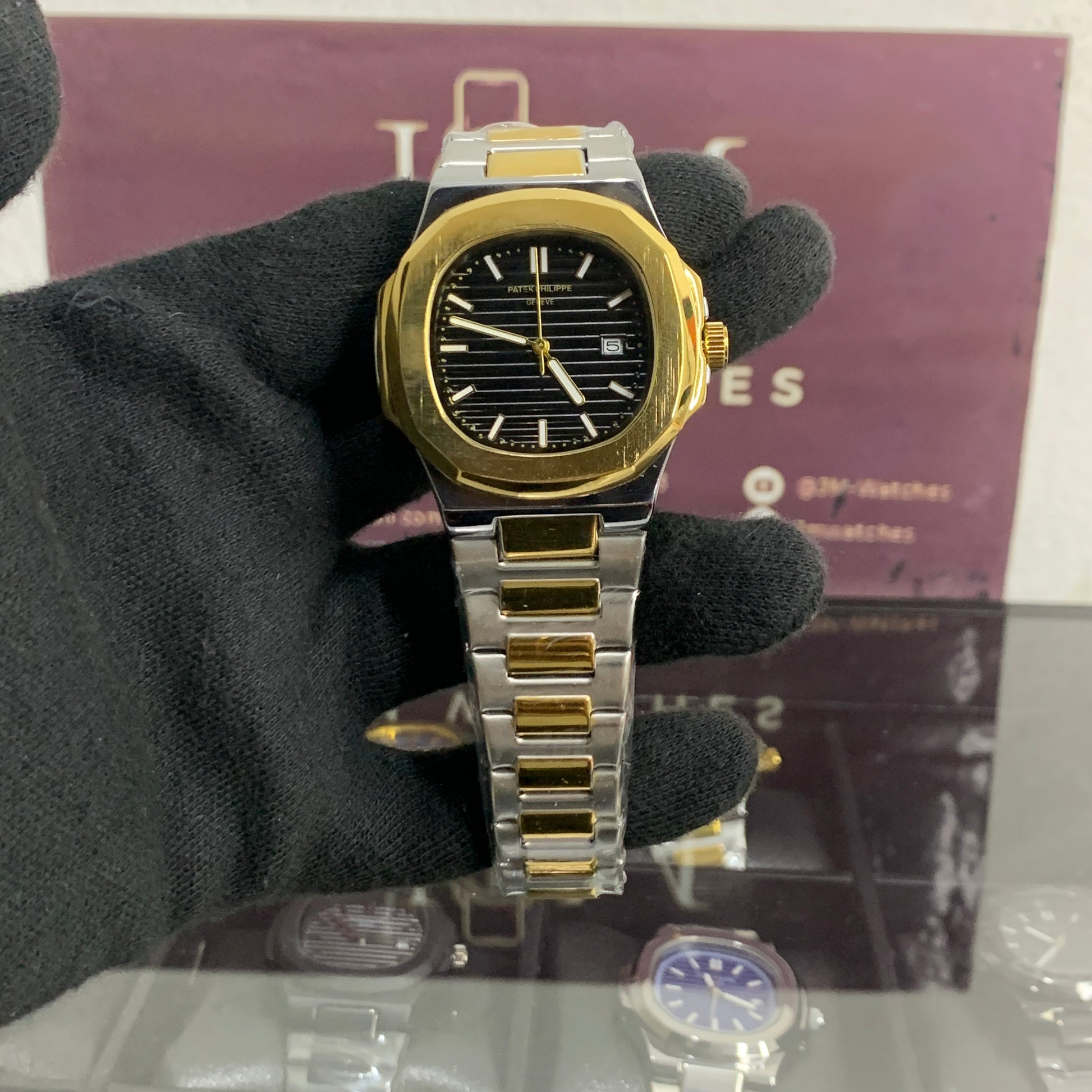 PP – Nautilus Two tone with Black dial (A+ quality)