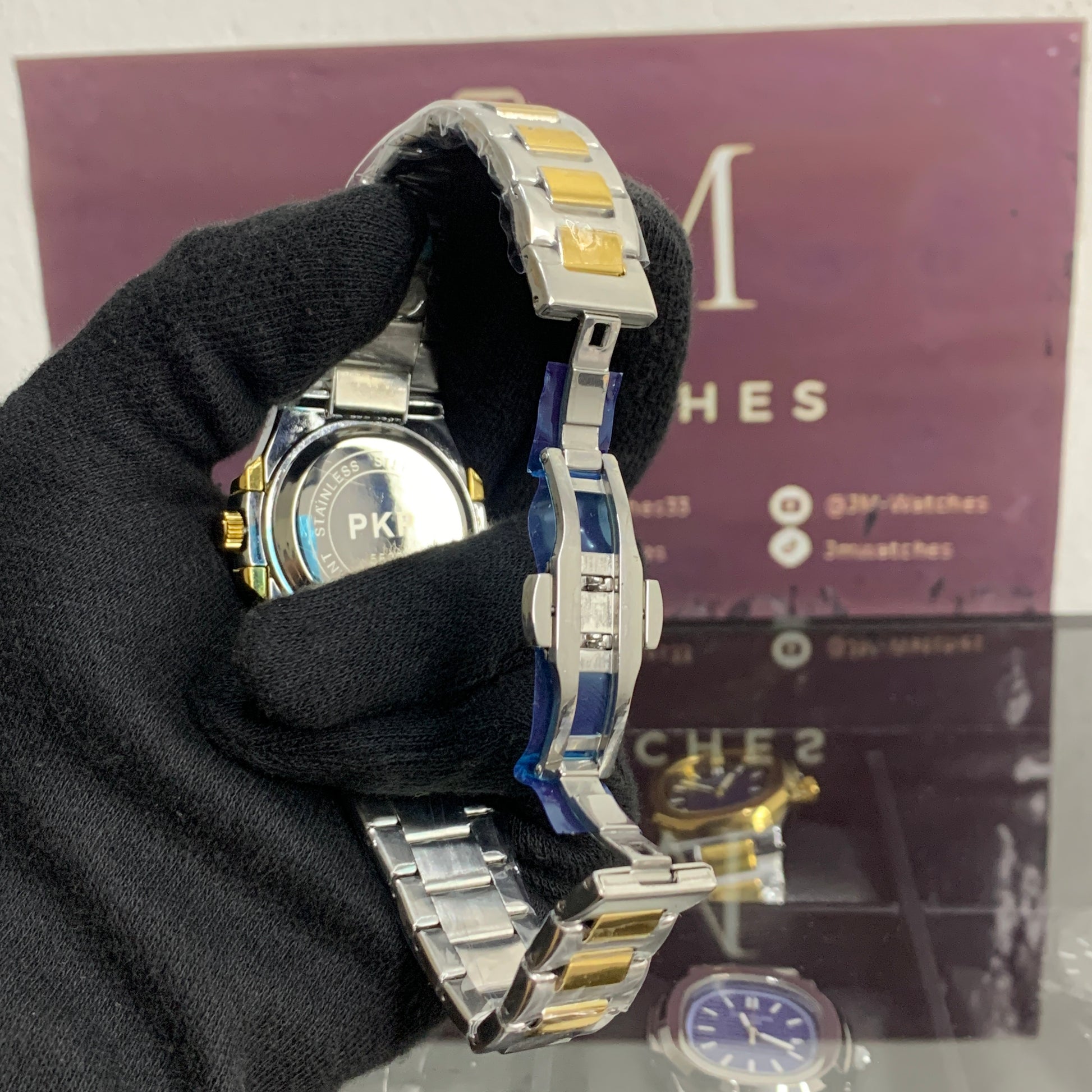 - Stainless Steel Bracelet with Fold-Over Clasp: Designed for everyday comfort and security, the bracelet combines polished and brushed links and is equipped with a sturdy fold-over clasp embellished with the Patek Philippe seal.